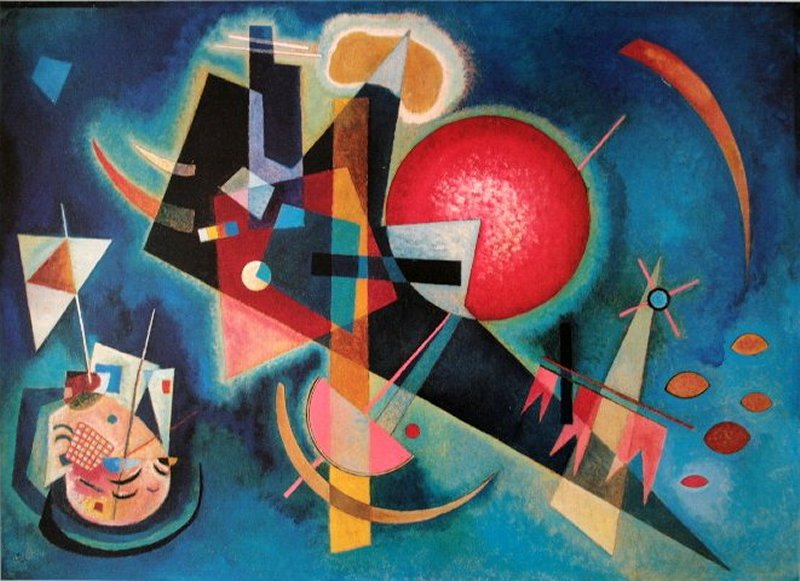Kandinskij amava il blu;   Der blaue Reiter, il gruppo che fondò insieme a Franz Marc ed altri pittori, prende questo nome dal titolo omonimo della sua nota opera, ma più in generale dal significato spirituale e profondo che lui ed altri sentivano di dover attribuire a questo colore. In Dello Spirituale nell’arte, Kandinskij descrive i legami sinestetici tra suono  e colore disegnando una vera e propria tabella in cui ad ogni sfumatura di colore sono associati uno stato emozionale umano (colto anche nel suo divenire) e il suono di uno strumento musicale (ascoltato anche in un particolare contesto).
