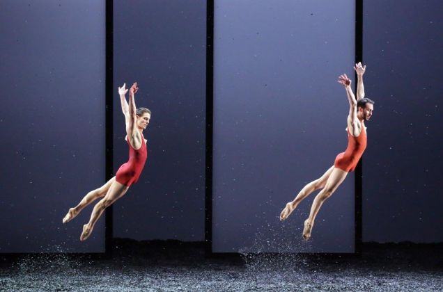 Dunque Preljocaj non attinge al di fuori dei codici della danza. Forse è vincolato proprio dalla scelta di portare in scena i musicisti dal vivo, perché in questo modo il viandante è lì, rivolto verso di noi, a narrarci del suo viaggio esistenziale quasi alla fine: la danza quindi non può limitarsi a “dipingere” con il movimento la poesia in musica. Non dipinge, ma evoca, nel senso che uno, due, sei danzatori vivono ed esprimono gli stati d’animo del viandante. Misteriosamente, essi “danno vita” alle sensazioni espresse nel canto, ma in modo caleidoscopico, tridimensionale.